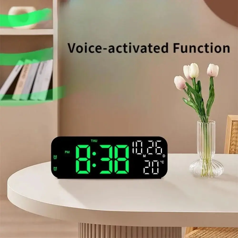 Brightness Adjustment LED Electronic Clock Voice Control 12/24H Format Large Digital Clock Auto-Dimmer 2 Alarms Alarm Clock Gym